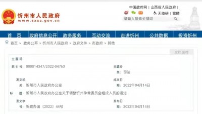 忻州市人民政府办公室关于调整忻州仲裁委员会组成人员的通知