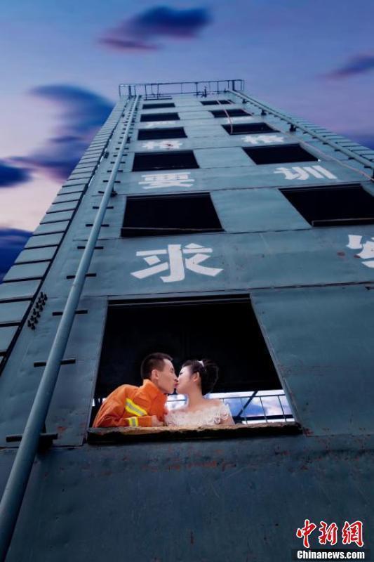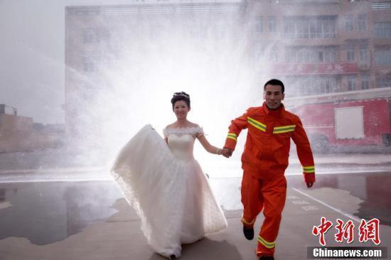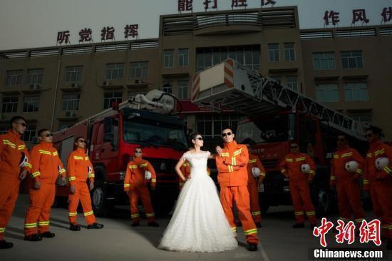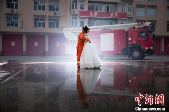 河北省邢台市消防支队平安路特勤中队的李宝刚是一名“80后”消防警官,即将步入婚姻殿堂的他选择在最熟悉的消防警营里与妻子拍摄了一组特殊的婚纱照。