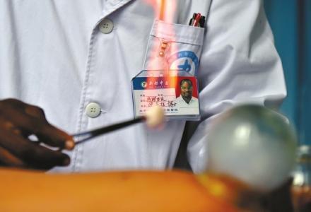 “大爷,是不是感觉好一些了?”迪亚拉医生用四川话问着骆大爷,然后又为骆大爷搭指号脉,观察病人的面相、舌苔,一丝不苟地“望、闻、问、切”……