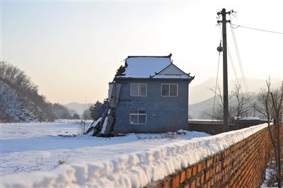 12月14日下午,残存的岫岩县偏岭镇丰富村村部二层楼房还在讲述着那次泥石流灾害的惨烈。