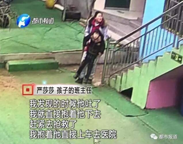 孩子每天早上都是由校车接到幼儿园的,孩子的班主任介绍,当天早上8点到中午11点半期间,孩子并没有异常表现。直到中午吃午饭的时候,孩子突然呕吐不止。
