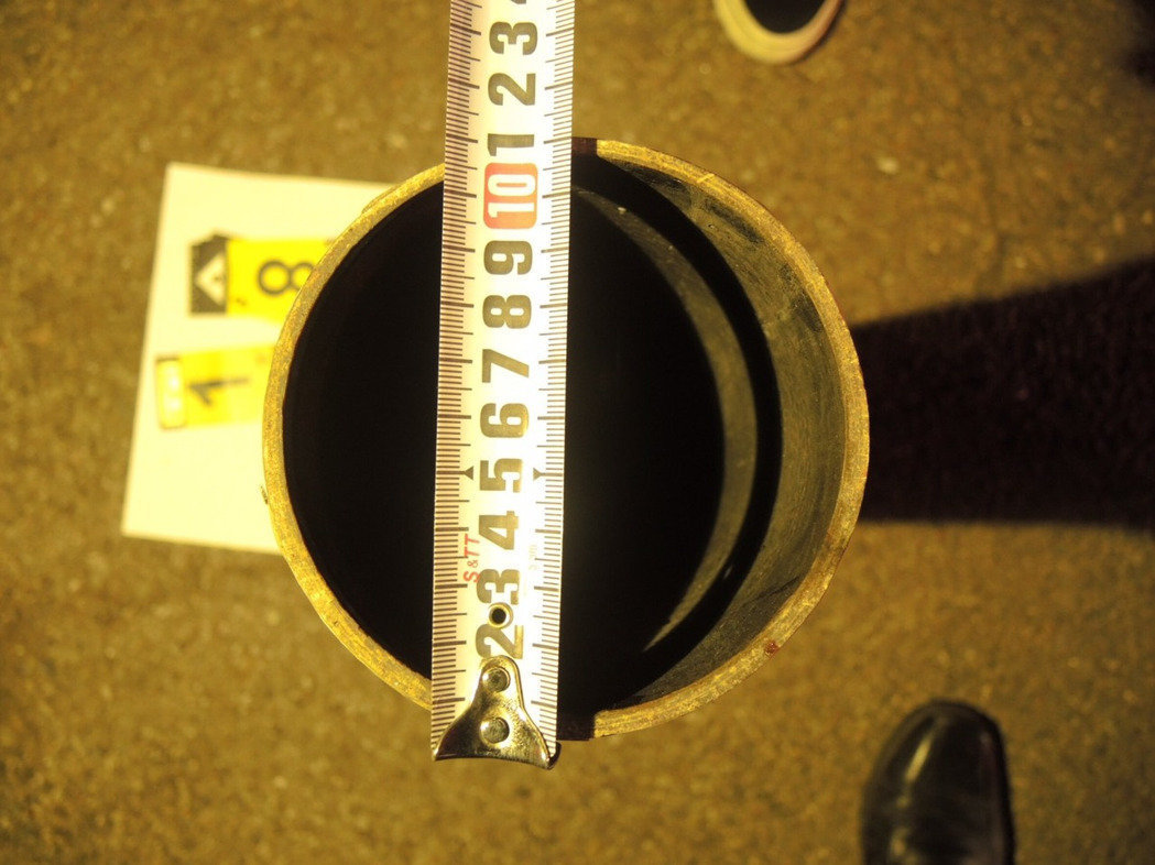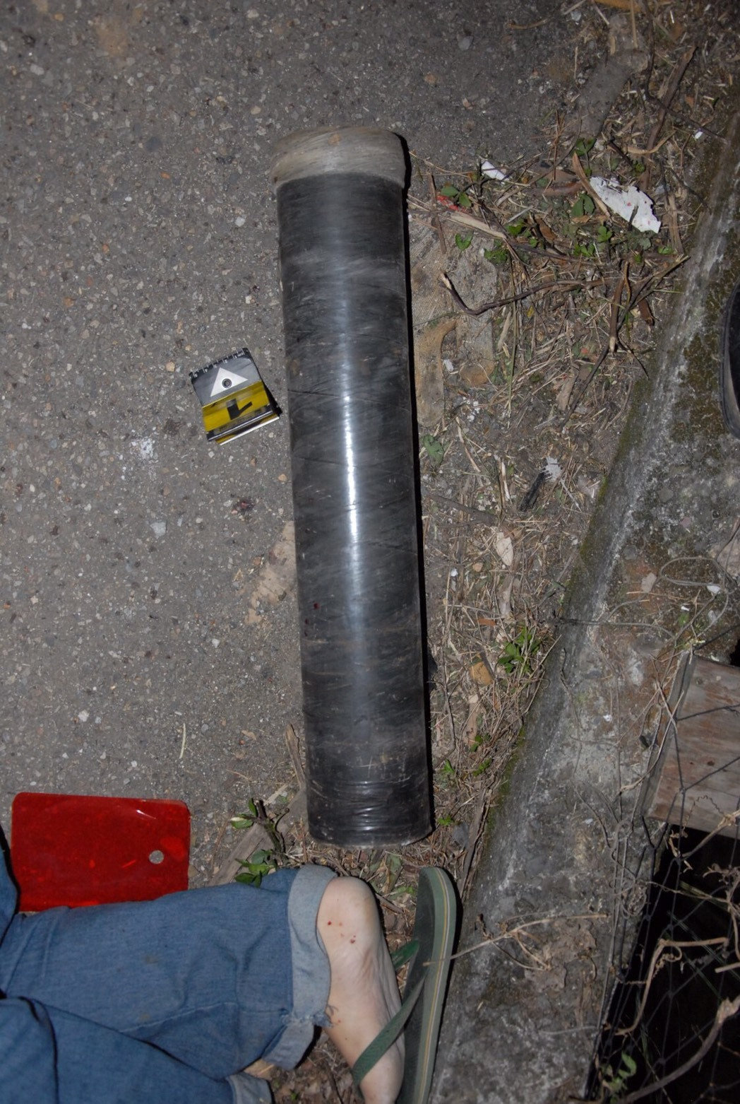 疑似蔡姓男子用来燃放高空烟火的塑料圆管,遗留在脚边。