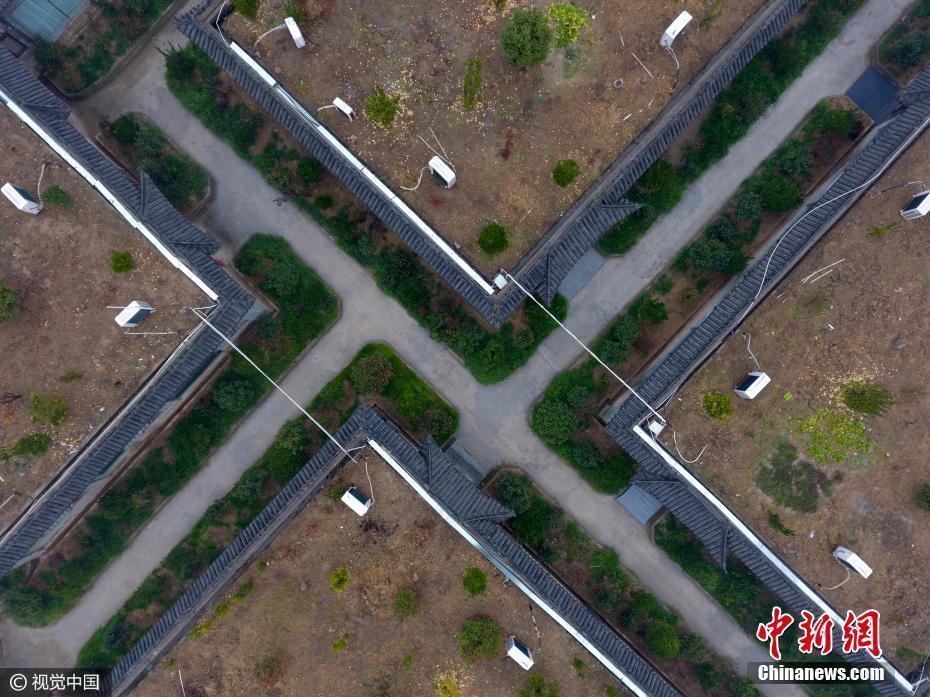 2017年1月5日,河南郑州,航拍凤凰城建材家居商场楼顶的“空中花园”建筑群。这处违章建筑面积达数万平方米,风格为仿古建筑,被租赁出去开设道教馆、仓库、会所、餐饮店等,这些商户尚处于装修阶段。