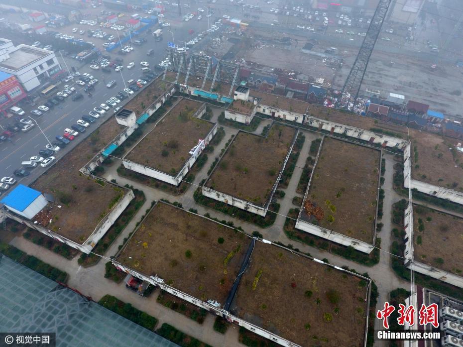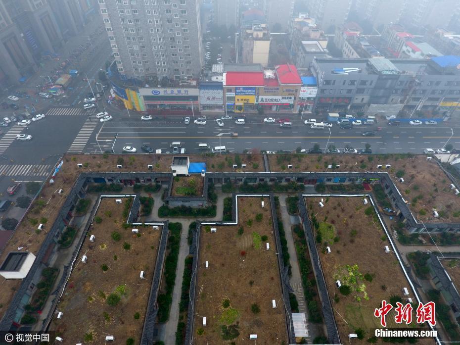 2017年1月5日,河南郑州,航拍凤凰城建材家居商场楼顶的“空中花园”建筑群。