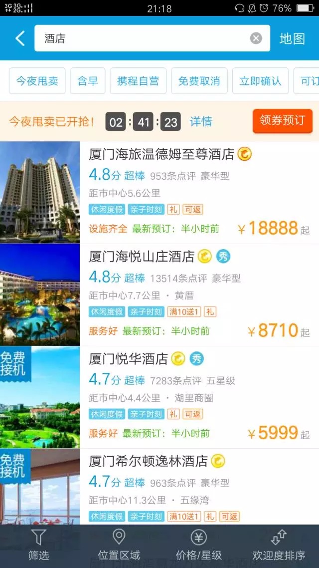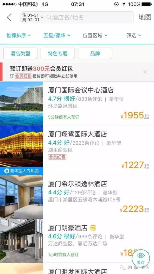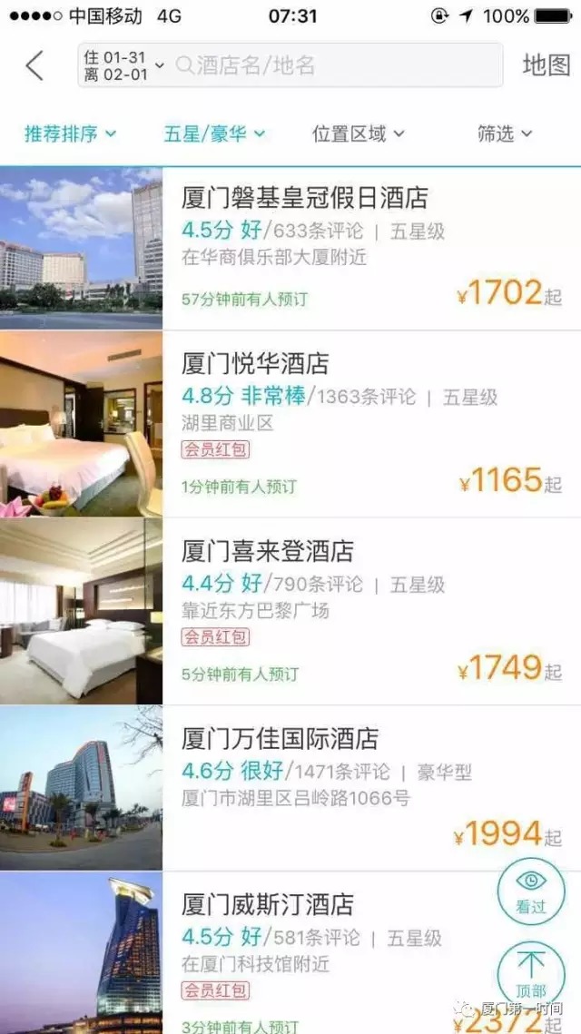 这是网站上显示的厦门部分酒店昨日(31日)价格