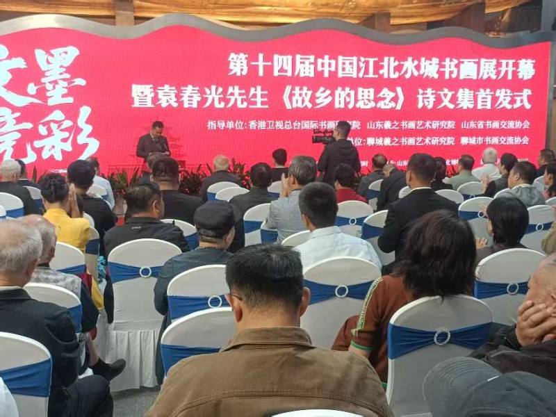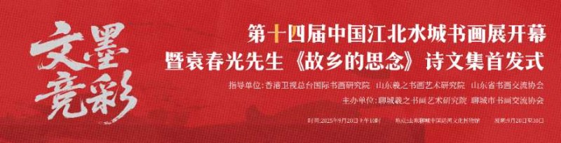 2025年9月20日,“文墨竞彩”第十四届中国江北水城书画展暨袁春光《故乡的思念》诗文集首发式,在聊城中国运河文化博物馆隆重开幕。此次活动正值中华人民共和国成立76周年前夕,由香港卫视总台国际书画研究院、山东羲之书画艺术研究院、山东省书画交流协会指导,聊城羲之书画艺术研究院、聊城市书画交流协会承办,为水城聊城带来一场融合视觉与文学魅力的文化盛宴。