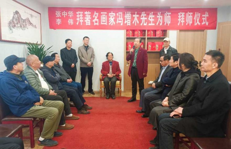春满泉城,墨香致远。3月24日,济南惠风和畅,春光潋滟,一场承载着中华传统书画艺术传承使命的艺术盛事——著名画鱼艺术家冯增木先生收徒拜师仪式,在这座历史文化名城举行。张中华、李伟两位新弟子正式拜入冯增木先生门下,接过传承丹青鱼艺与水墨文脉的接力棒。此次仪式汇聚冯门学子、各界精英与书画同道三十余人,既是师门薪火相传的重要节点,更是中华优秀传统文化在新时代赓续发展、后继有人的生动缩影,为传统国画鱼艺的传承与创新书写崭新篇章。