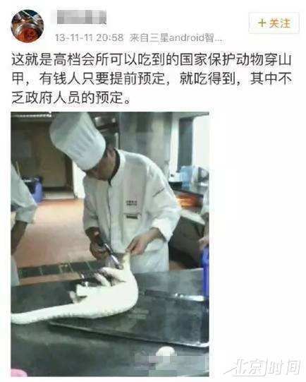 国家林业局保护司动物处值班工作人员:若食用野生穿山甲肯定涉嫌行政案件,他们已经关注到网络反映的这一热点问题,希望网友有更进一步的详细信息进行反馈。