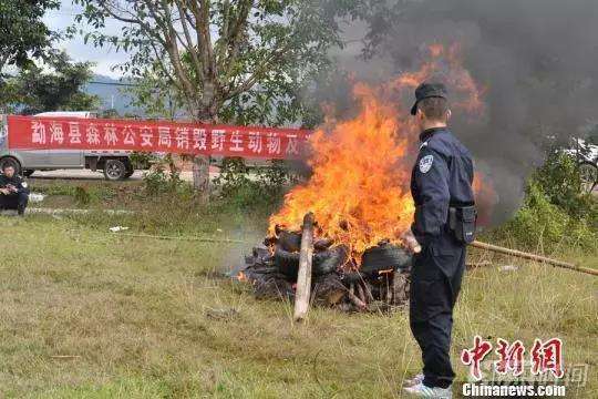 2016年12月,云南省西双版纳州勐海县森林公安局破获一起非法出售珍贵、濒危野生动物制品案,查获白鹇(死体)一只,猫头鹰(死体)一只,绿斑鸠(死体)三只,大象皮两块,穿山甲甲片36片,其他鸟类(死体)十七只。抓获犯罪嫌疑人1名。