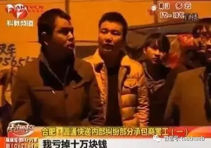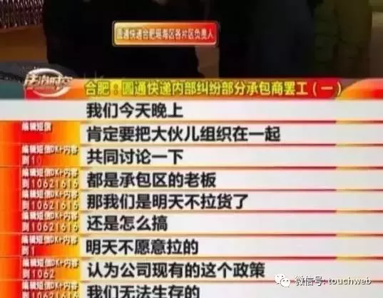 北京圆通快递倒闭风波兴起之前,圆通快递的承包商还产生了罢工事件。安徽卫视科教频道“法治时空”栏目日前披露,圆通速递合肥10多个承包商集中在一起,商讨罢工事宜。
