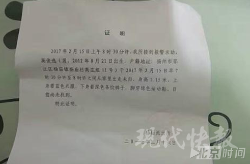 据家人介绍,高俊逸平时出门,也会乖巧地把院门闩好。高俊逸的爷爷高兴春告诉现代快报记者,家人四处找了一圈没找到,就在当天 8 点左右打电话报警了。
