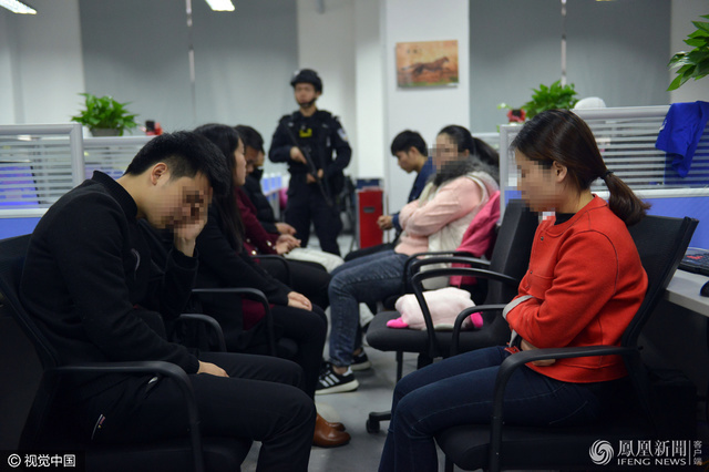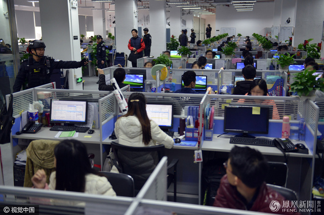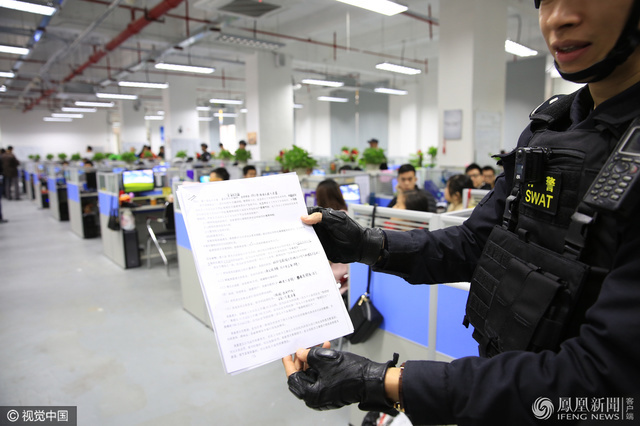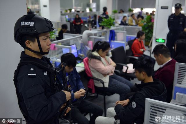 警方对这个公司的部分涉案人员带回做进一步审查。图为越秀抓捕现场。(来源:凤凰网)