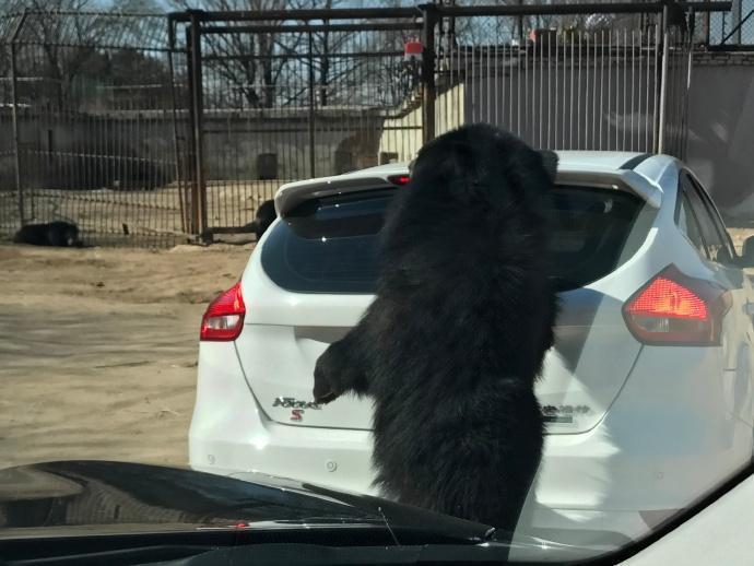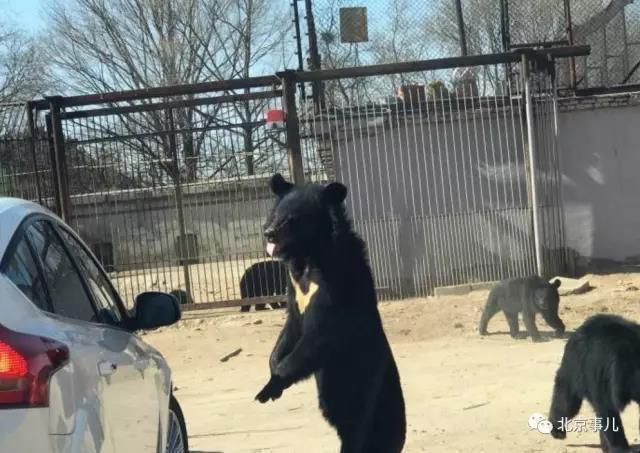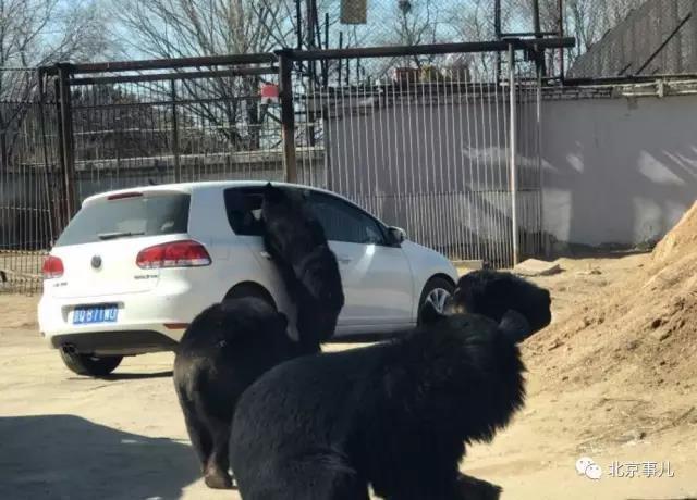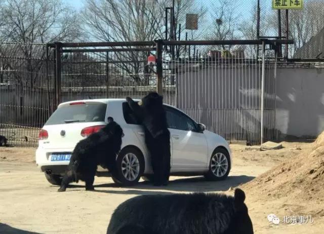 现场图,八达岭野生动物园小轿车遭黑熊围堵。