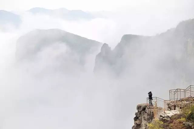 放眼下去是悬崖断壁,万丈深渊,雨天是云雾缭绕从脚下飘过,仿佛在云端一般,很是壮观。