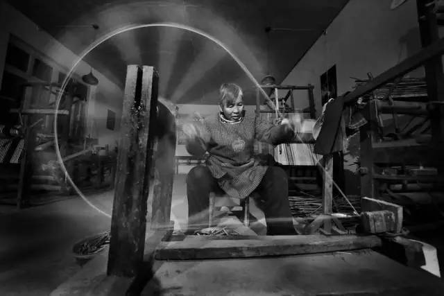 这次进山采风偶遇了传统的织布工艺,使他激动万分:一下子感觉回到了那个童年时代。