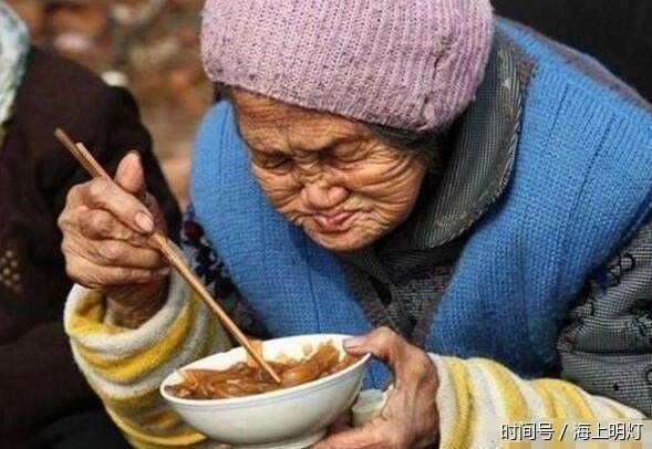 简单的一碗捞面就能让老人家吃饱。看她的样子似乎吃得不错,但是内心无比孤独呀。一个人吃饭总是寂寞些。