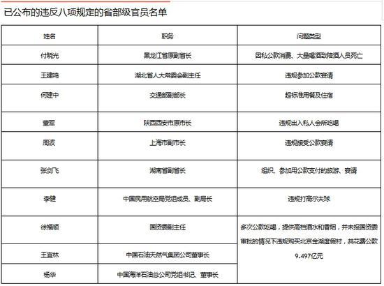 因违反八项规定受处理 省部级高官达17人