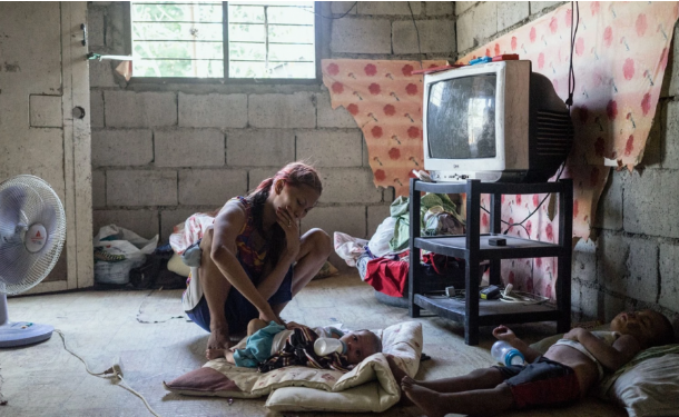 2016年,受曾负责报道台风“海燕”及其灾后情况的记者Aurora Almendral(音译:奥罗拉·阿尔门德拉尔)所托,摄影师Hannah Reyes Morales开始拍摄这些女性。她们在庇护所里花费大量时间,见到了被皮条客从疏散中心带出的一名女孩。她们与一名被贩卖给一个网络团伙的女子交谈,她16岁就怀了孕。她们在安赫莱斯进行报道,却因为没有白人男性的陪同而被赶出了酒吧。她们试图进入一个没有人相信彼此的地方,却一次又一次碰壁。图为马尼拉的一间安置所,两名被从性产业中解救出来的女孩正在荡秋千。
