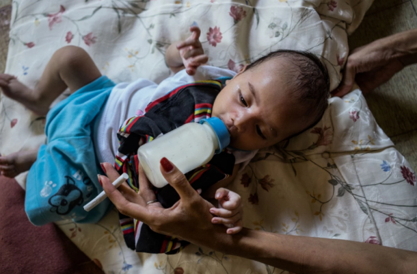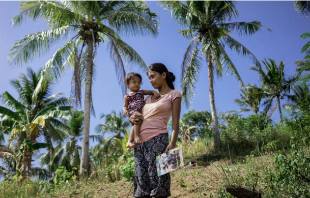 一名女子和她的孩子。在她16岁时,她被贩卖给了安赫莱斯市附近的一个网络卖淫团伙,并因此怀孕。