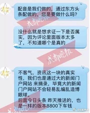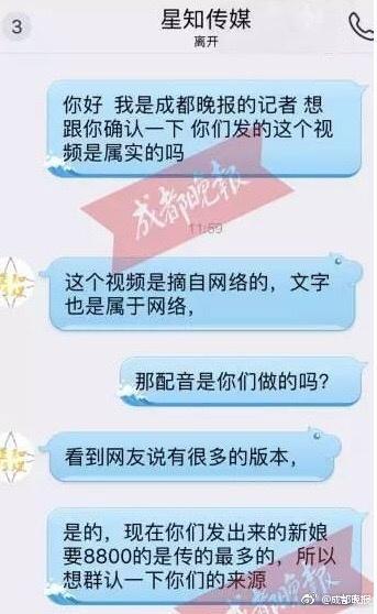 成都晚报记者对话到了"星知传媒"工作人员,求证内容是否属实,该工作人员明确回应记者,这个视频是摘自网络的,文字也是来源网络,"配音是由我们做的,内容是通过大的新闻门户网站来摘录。"不过,该工作人员并未明确回应,文字内容到底从何而来。