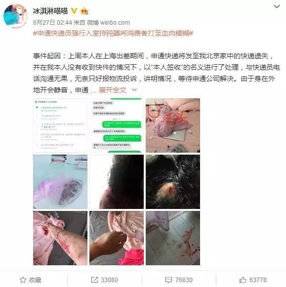 6月27日下午,北京申通快递官方微博就此事进行回应,称公司已经获悉此事,向客户致歉,尊重事实真相,不会逃避责任,更不会“容忍”任何侵害客户行为的存在,会就此事给公众一个交代。