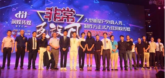 6 月30 日下午,《非常民族风》大型明星户外真人秀制作方正式入驻润娱传媒暨签约仪式在长沙圣爵菲斯大酒店盛大举行。其中,影视巨星罗嘉良、国际超模国内著名演员瞿颖、湖南卫视知名主持人李锐、杨乐乐、yoyo 等悉数到场,共同见证这一历史性时刻。