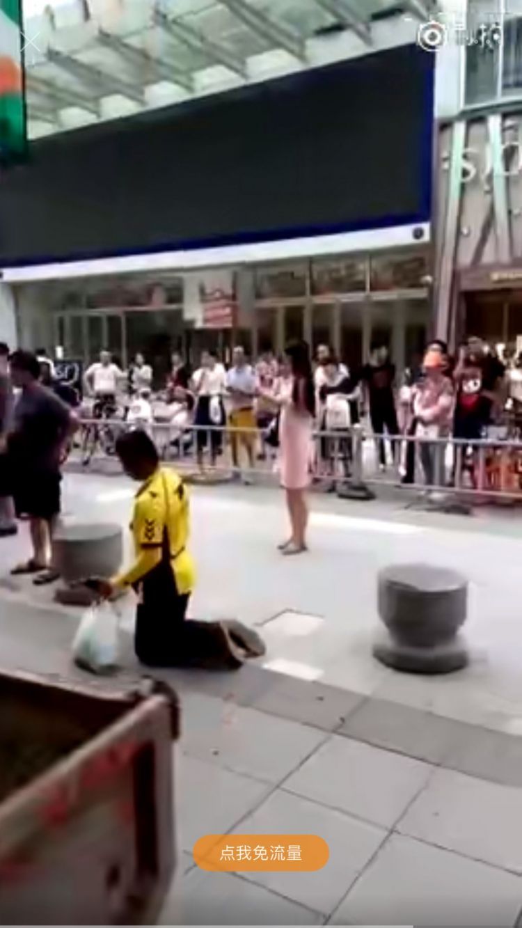 7日,一外卖小哥拎饭跪在泉城路人行道的视频被众多网友转发。外卖小哥身着美团外卖制服,左手拎着还未送出去的外卖,双膝跪在泉城路北侧泰府广场附近人行道,前方约3米处,一辆警示灯小型货车停靠在路边。