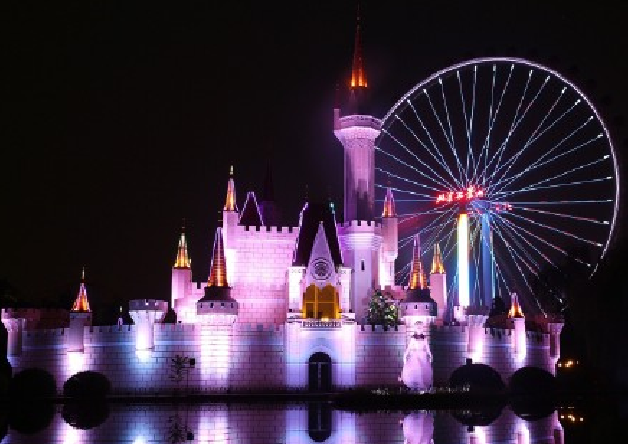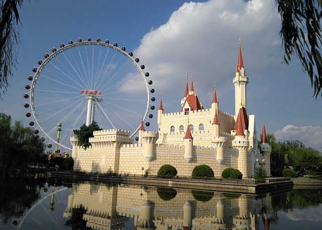 “梦想之星”摩天轮直径达88米,总高约100米,配有42个球形全透视360度全景座舱。创意独特摩天轮灯光首秀夜场,由电脑控制的百种变化、多彩绚丽LED灯将摩天轮装扮得流光溢彩,美轮美奂。游客登上摩天轮远眺,西山的夕阳落日美景令人心醉,夜幕降临的车流不息让人感受城市跳动的脉搏,灯光闪烁的摩天轮在灰姑娘城堡城的映衬下愈发神秘梦幻,构成了一幅美丽的动感画面。