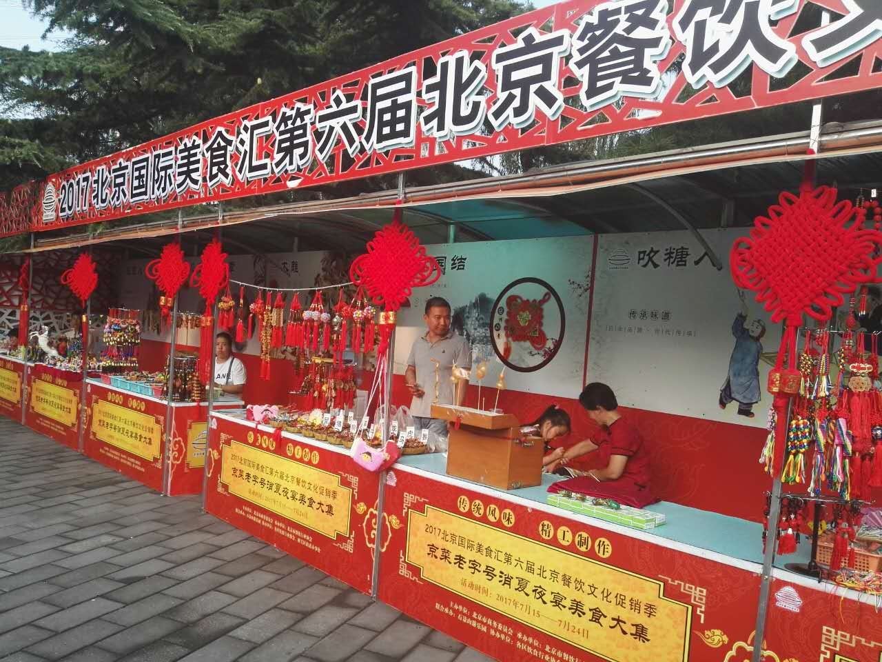由北京市商务委员会主办,北京市餐饮行业协会承办的2017北京国际美食汇第六届北京餐饮文化促销季之京菜老字号消夏夜宴美食大集于2017年7月15日在石景山游乐园拉开序幕。这是一场北京老字号、非遗传承人的大聚会。50余家老字号企业齐聚一堂。可以让更多的年轻人了解中国国家的文化瑰宝,了解中国百年千年的美食文化传承。通过协会搭建的平台,老字号企业通过文化的力量,感染和深入到消费者内心。与会企业有:便宜坊、护国寺、功德林、力力豆花庄、都一处、南来顺、帕米尔食府、眉州东坡、稻香村、三元梅园等知名企业,同时非遗传承人冯三杏冯大师带领着十几位非遗老艺人为大家呈现了吹糖人、捏面人、草编、糖画、烙葫芦、龙凤字等精彩互动内容。通过现场品尝老字号美味,现场观摩老字号美食制作工艺、老字号拜师传承、老字号绝活表演等精彩内容,通过消费者口口相传、媒体争相报道,将国家的文化瑰宝弘扬光大。