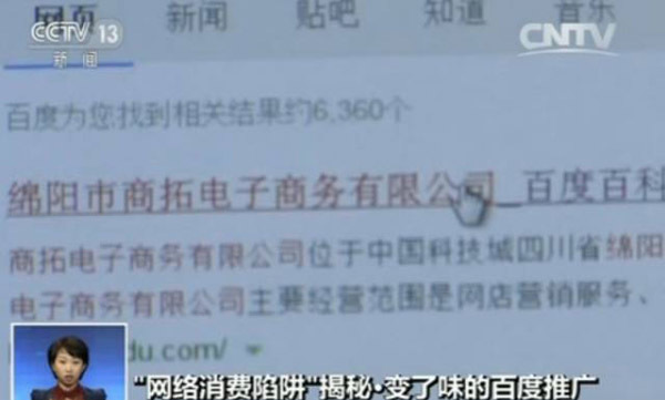 在今年3月初,广东东莞罗女士开了一个网店。由于不熟悉网店经营手段,她就上百度进行了搜索。当罗女士在百度搜索中输入“如何开网店”后,名为“绵阳市商拓电子商务有限公司”出现在页面中非常靠前的位置,她就点了进去。