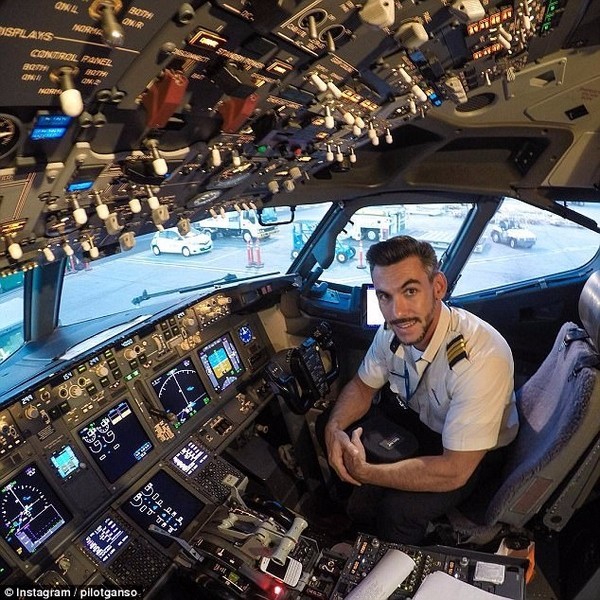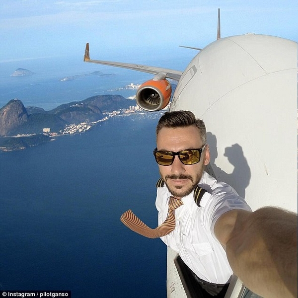 该飞行员的Instagram帐号名叫Pilotganso,他分享的照片显示的是在迪拜棕榈岛上空,他在飞行途中把半个身子露在机舱外自拍。