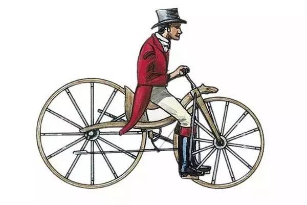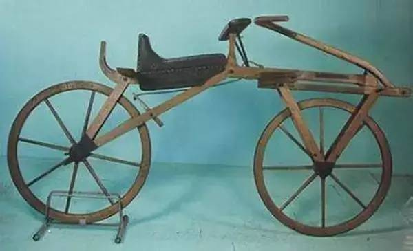现在公认的世界上第一个发明自行车的人是法国人西夫拉克,他 1790 年发明的木制自行车,没有车把、没有脚蹬、没有链条,座垫也很低,人需要双脚着地向后蹬自行车才能前进。