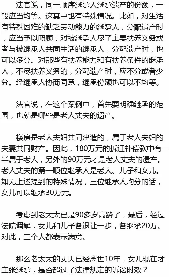 法官说,继承分为法定继承和遗嘱继承这两类。由于老人的丈夫生前并没有订立遗嘱,这就不属于遗嘱继承了,属于法定继承。